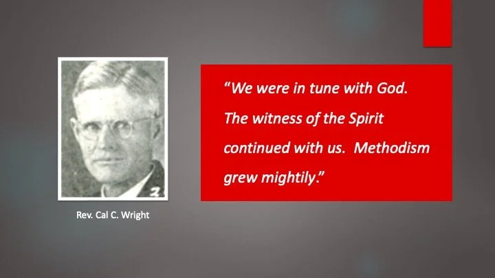 Circuit rider Cal C. Wright (ordained in 1909) said of those days, “We were in tune with God. The witness of the Spirit continued with us. Methodism grew mightily.”
